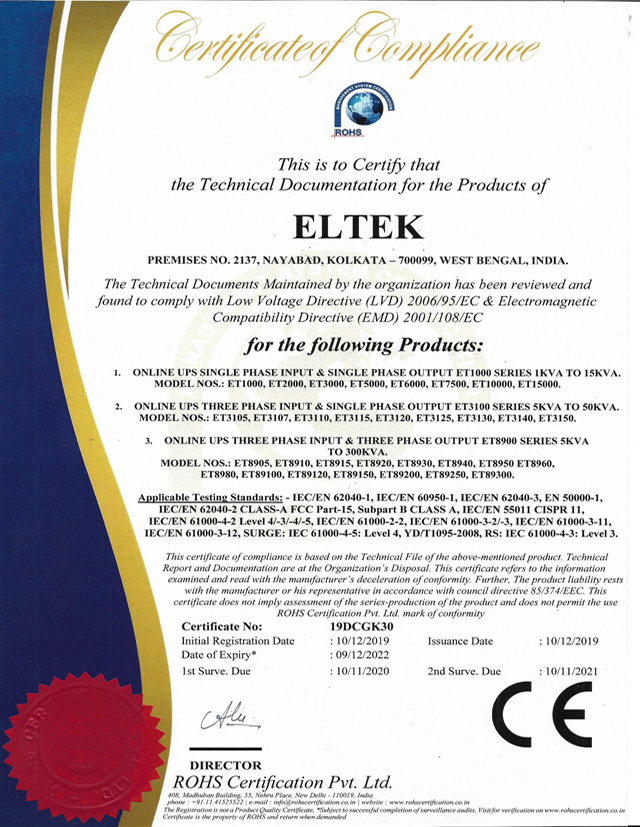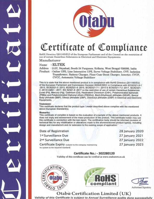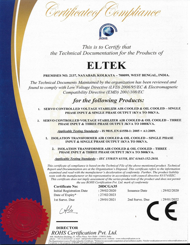 CE Certificate- Servo Stabilizer & Isolation Transformer